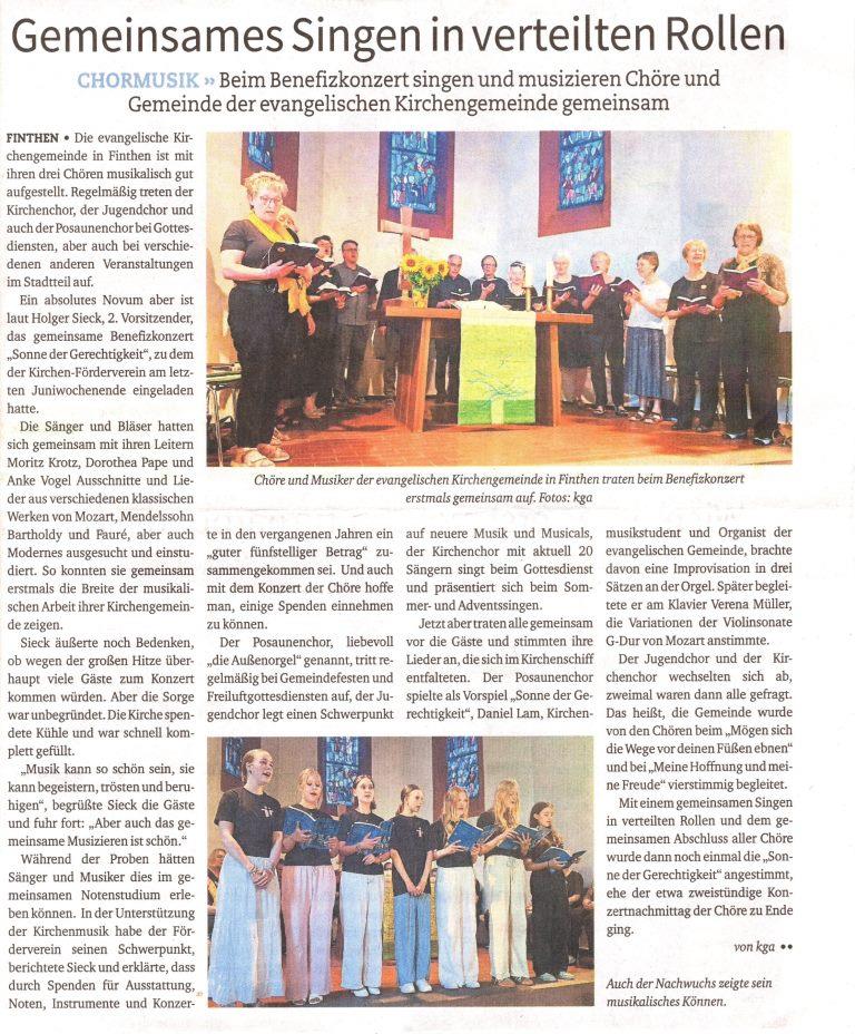 Rückblick Großes Benefizkonzert der Kirchenmusiker vom 28.06.25 17. Oktober 2025 Gabi Lambinus Veranstaltungen Presseartikel „JOURNAL LOKAL 9.25“